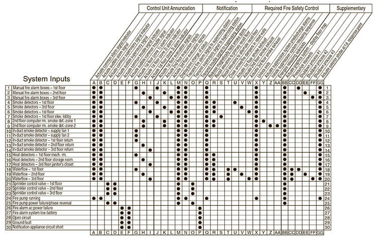 Таблица 1. Типовая матрица входов/выходов из NFPA 72